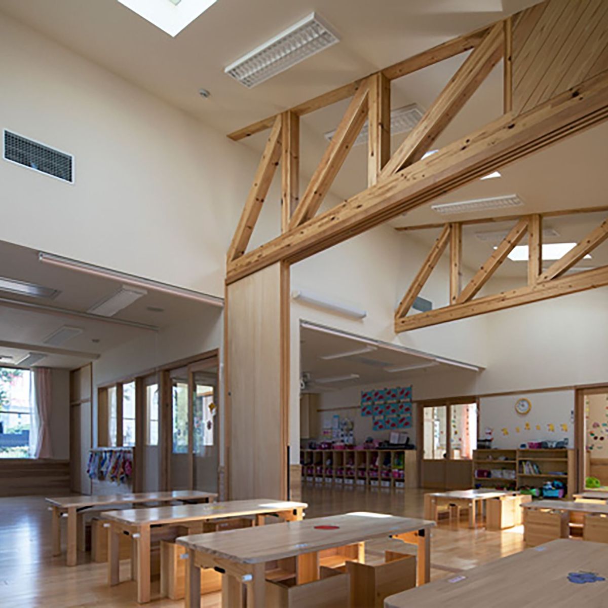 This is a nursery school full of the warmth of wood, designed to nurture the healthy growth of children’s minds and bodies. The gentle, wood-grain building stimulates the children’s five senses and fosters a calm and gentle spirit. Utilizing conventional Japanese construction methods, we have created a spacious and comfortable environment where children can feel safe and spend their days freely. Watched over by the local community, this is a place of learning that cultivates smiles for the future.