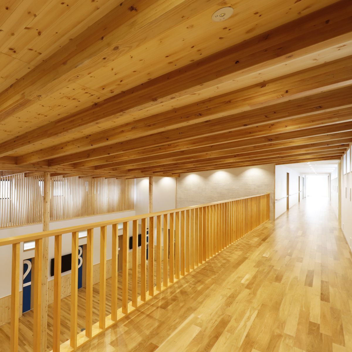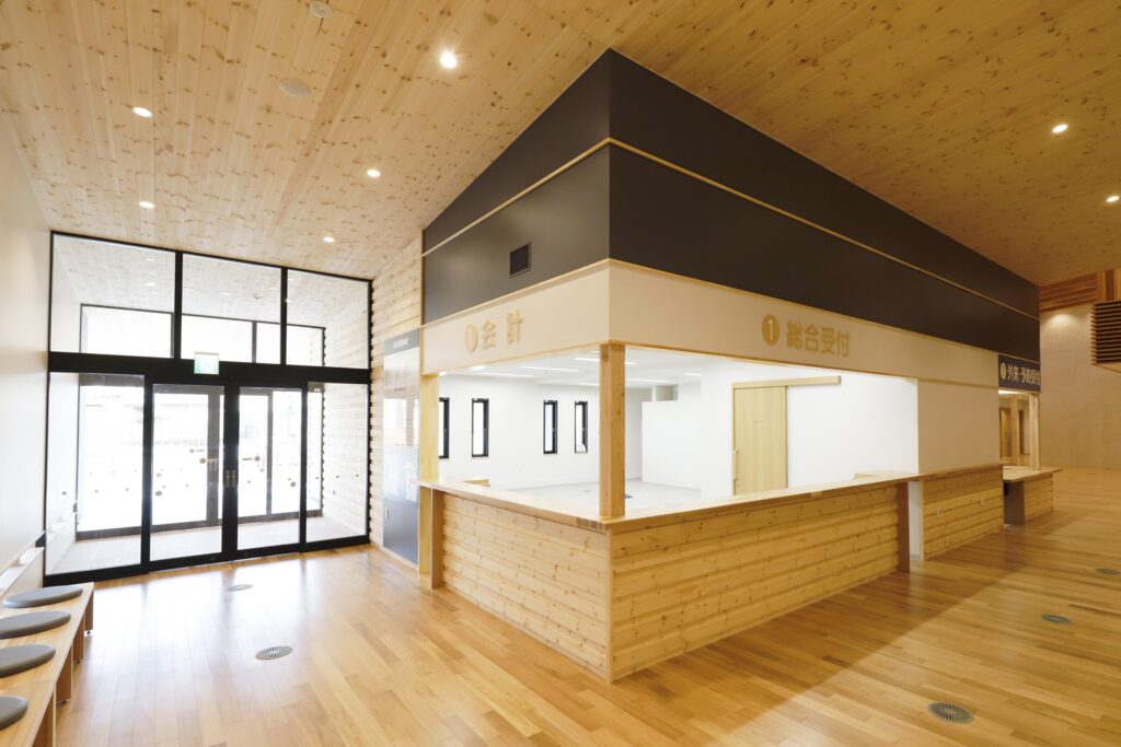 温もりあふれる木造の院内が、訪れる人々の心を優しく包み込む筑波胃腸病院。外観から内装に至るまで、ふんだんに木材を使用することで、病院特有の緊張感を和らげ、安らぎに満ちた空間を創造しました。低層階の建物は圧迫感がなく、地域の景観にも溶け込みます。患者様一人ひとりに寄り添う、地域医療の拠点にふさわしい建築です。