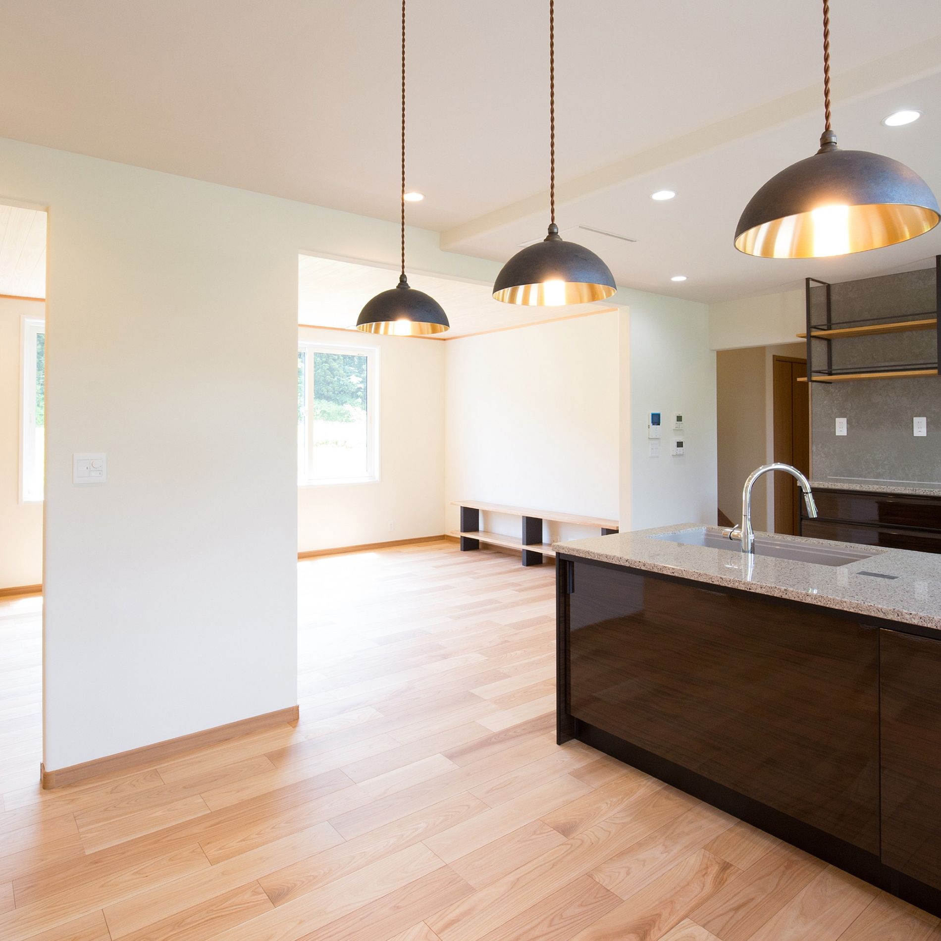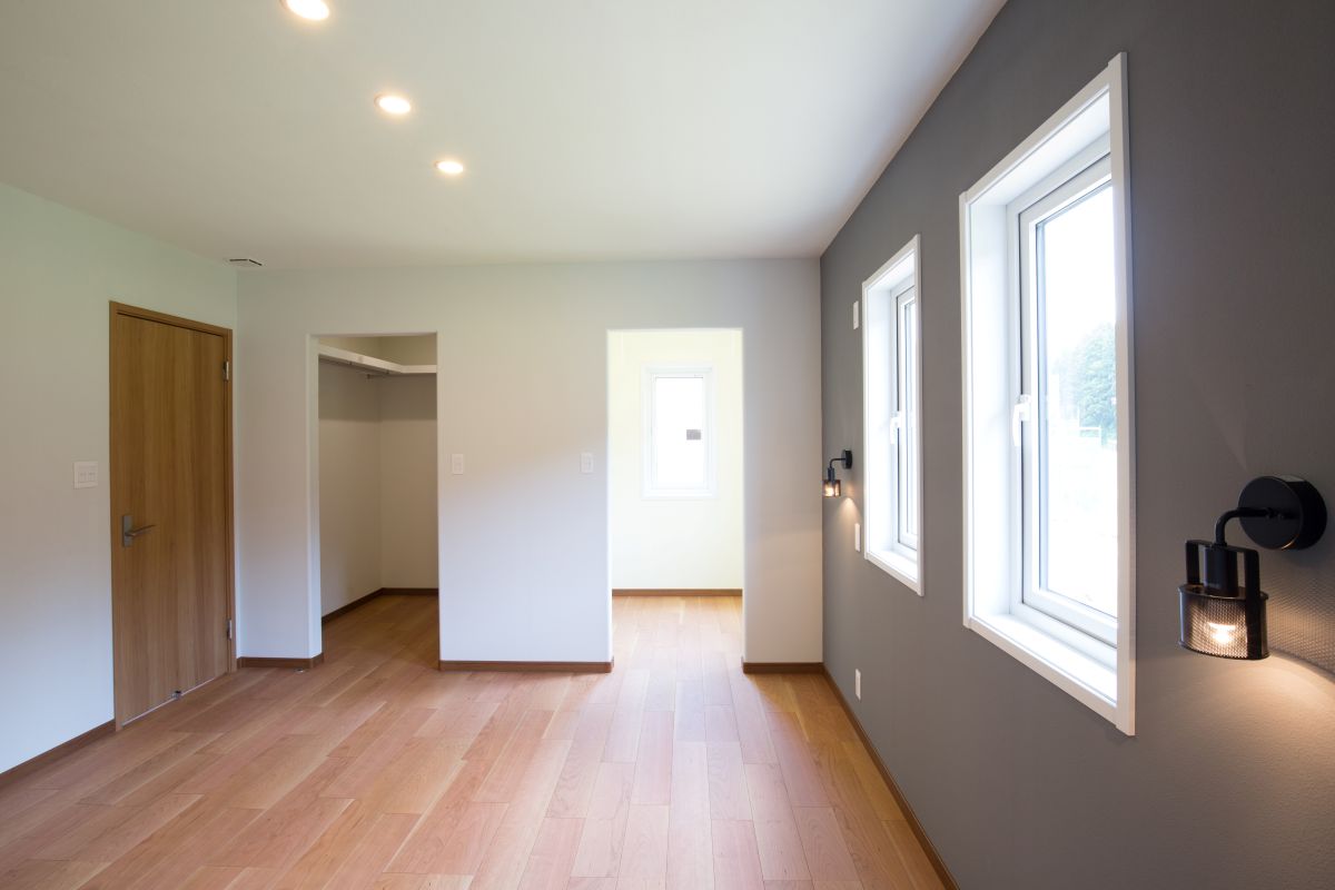On the southern wall facing the fields and forest, we have placed large windows that incorporate that scenery into daily life. It is a comfortable home where you can enjoy the changing natural landscapes of each season within a carefully designed living space.
